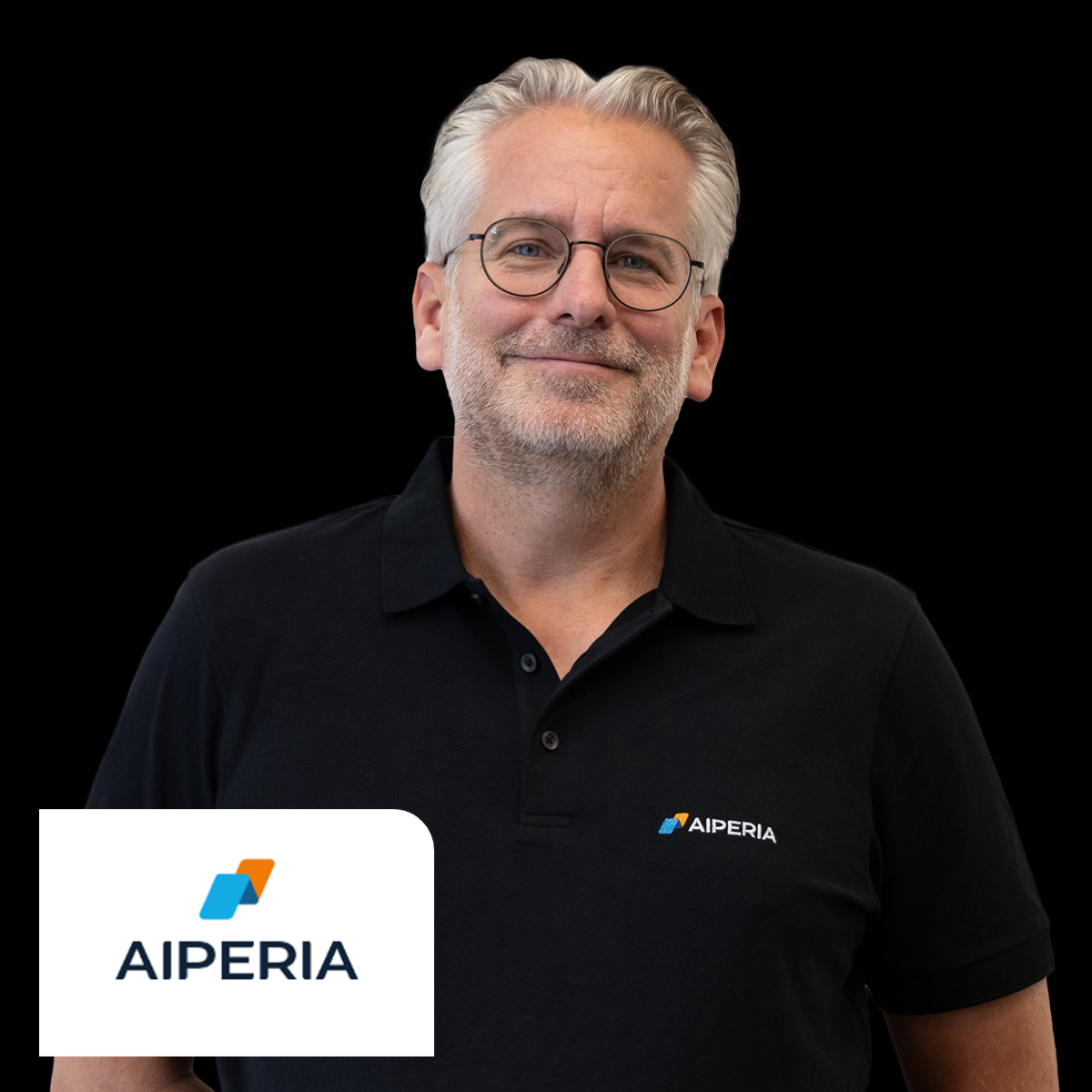 Logo von AIPERIA mit blauen und orangefarbenen geometrischen Formen